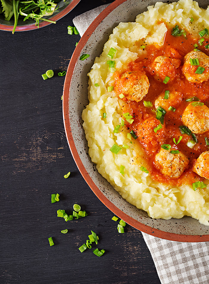 КЮФТЕНЦА С ДОМАТЕН СОС И КАРТОФЕНО ПЮРЕ